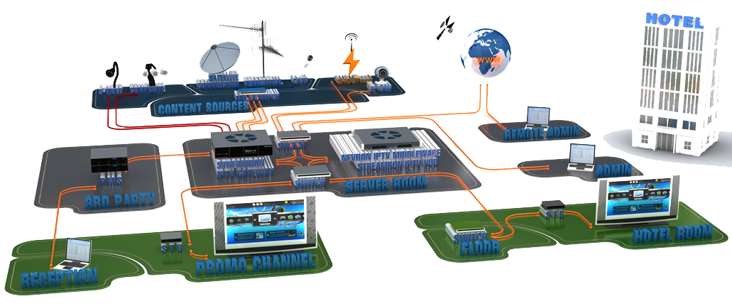 VIPTV can acquire any video signal source such as Satellite Downlink, Sourcing from Files,